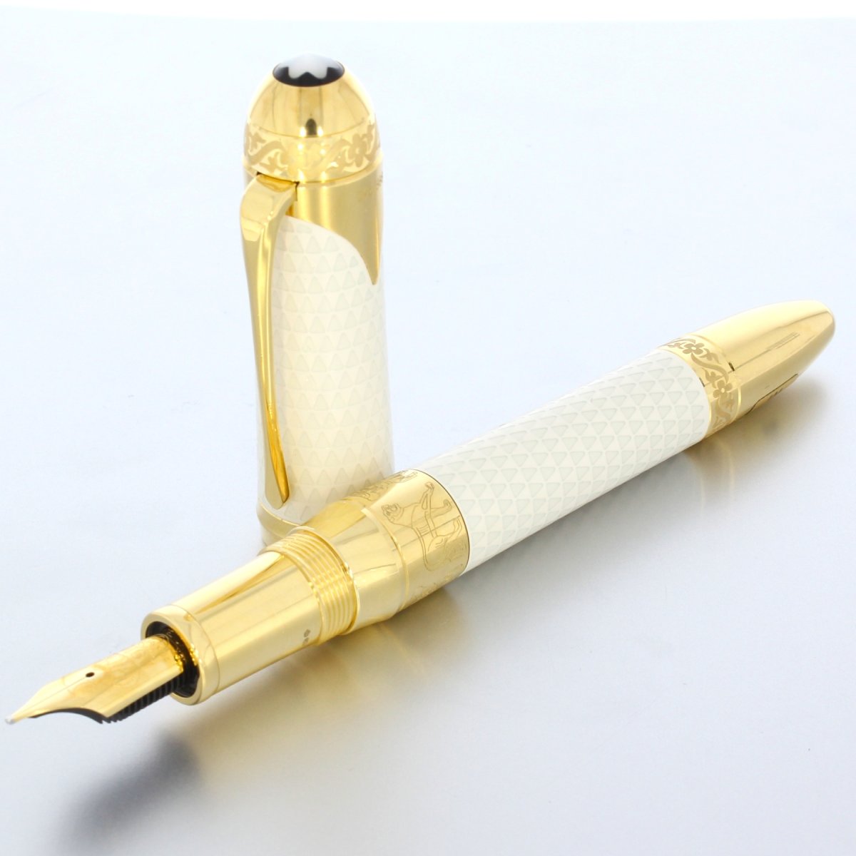 La vita del Barone Max von Oppenheim è stata caratterizzata dalla passione per l’esplorazione e la scoperta, per la bellezza e il fascino del Medio Oriente. Per onorare un uomo che ha esplorato l’Europa e l’Oriente, il design della Limited Edition Max von Oppenheim si ispira alle cupole delle moschee orientali. Gli inserti ricordano le decorazioni e gli affreschi del Medio Oriente, mentre gli anelli della stilografica richiamano i celebri motivi e rilievi di Tell Halaf. La Limited Edition Max von Oppenheim Patron of Art è coronata dall’emblema Montblanc bianco e decorata da un motivo beduino finemente inciso sul pennino in oro 18 Kt. Id 104221