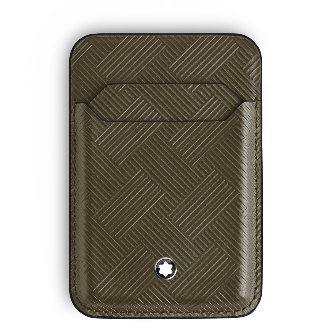 Il porta carte Montblanc Extreme unisce stile e praticità, aggiungendo un tocco di raffinatezza moderna al tuo iPhone. Realizzato in pelle kaki, si fissa magneticamente al dispositivo o alla custodia. La forma rettangolare con angoli arrotondati e il motivo distintivo Extreme 3.0 rendono questo accessorio contemporaneo e funzionale, con due scomparti che consentono di accedere facilmente alle carte principali.