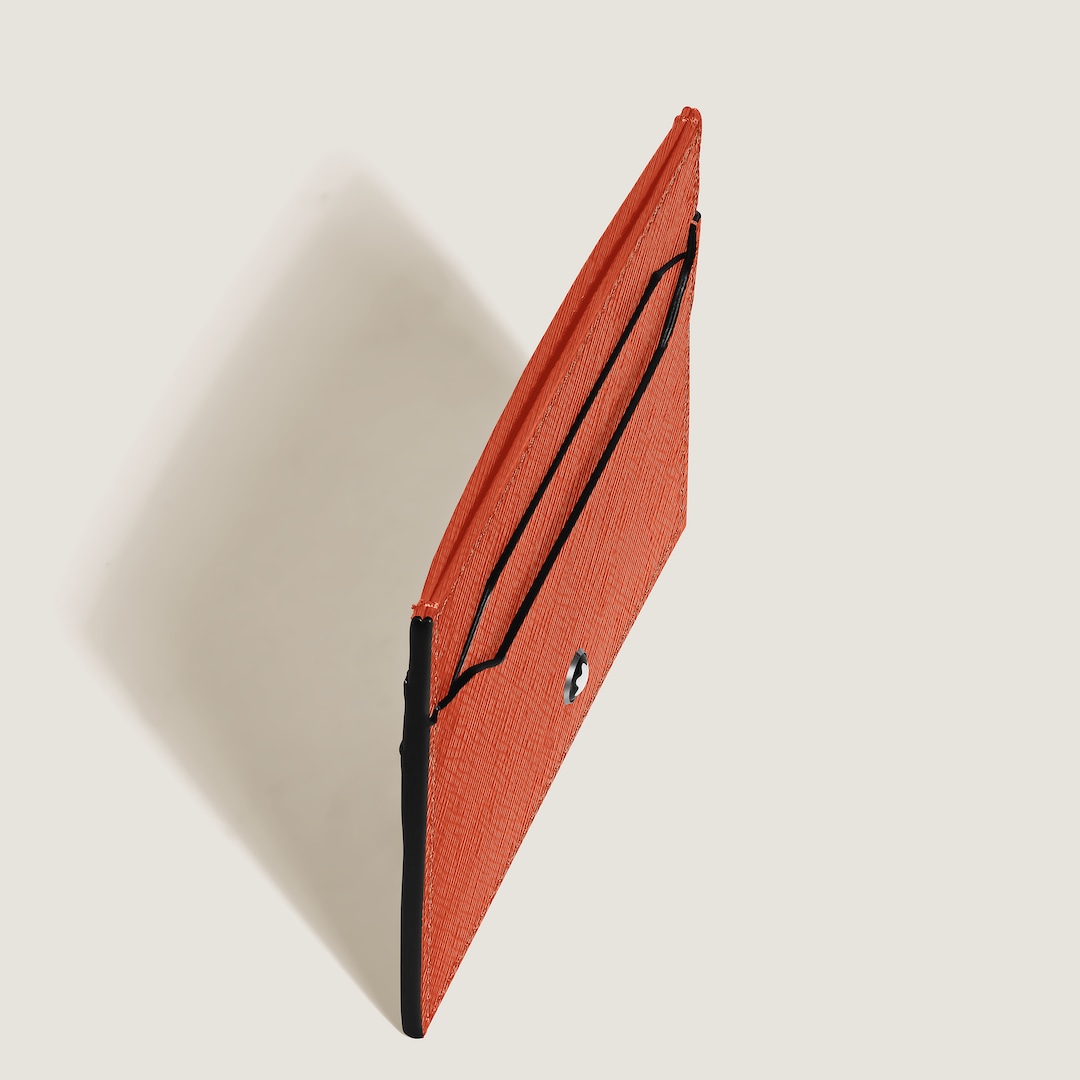 Porta carte compatto pensato per organizzare fino a cinque carte in modo semplice e pratico. La pelle Sartorial goffrata in tonalità mandarino conferisce colore e resistenza, mentre il design interno permette un facile accesso alle carte durante gli spostamenti.